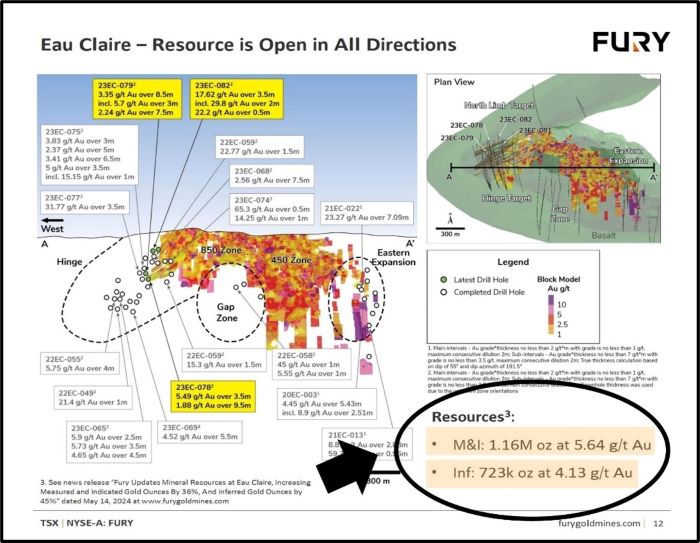 Fury Gold drill program boosts Eau Claire M&I gold to 1.16 million ounces @ 5.64 g/t