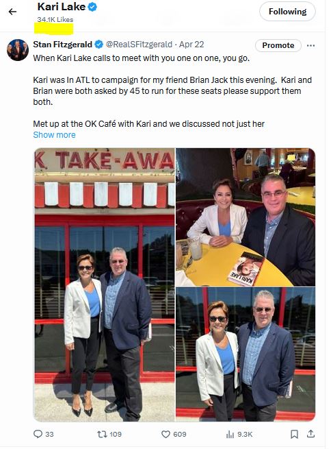 Stan Fitzgerald of Acworth Georgia flexes political clout with Kari Lake one on one meeting. VFAF Veterans for Trump